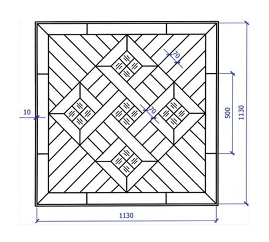 Every participant lays a two layer parquet design with rods on a chipboard with the measurements 500 x 70 x10 mm. They use bright, smoked and muted oak according to a set drawing. All the three wood colours result together in a harmoniously colour contrast.
